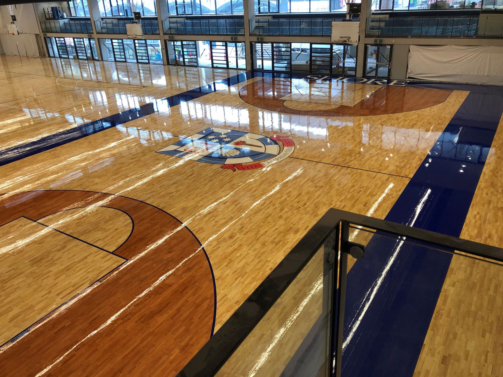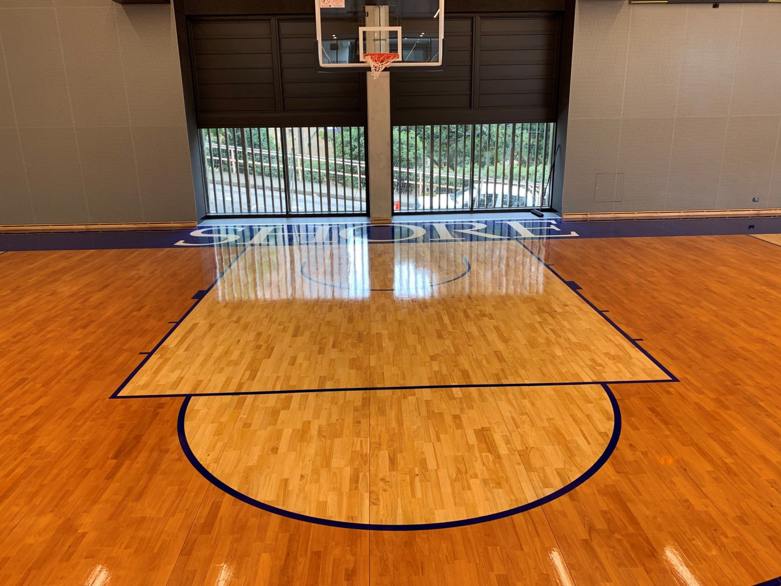 Shoreline was contracted to supply & install our ASF PR3 Sprung Timber Floor System furnished with Multi-Sport T & G Flooring. Our Level 1 FIBA certified PR3 System offered the client the system force return required for high end sporting competitions and the durability that is a must within an education facility. The talented Shoreline Sports Floor staff also completed Court Design works to the Main Court One area, creating a spectacular finished product that now provides Shore School with a real point of difference in their new Stadium area. Our patented 22mm thick full hardwood Multi-Sport floorboard will also ensure that the system provides Shore School with industry leading asset life span.